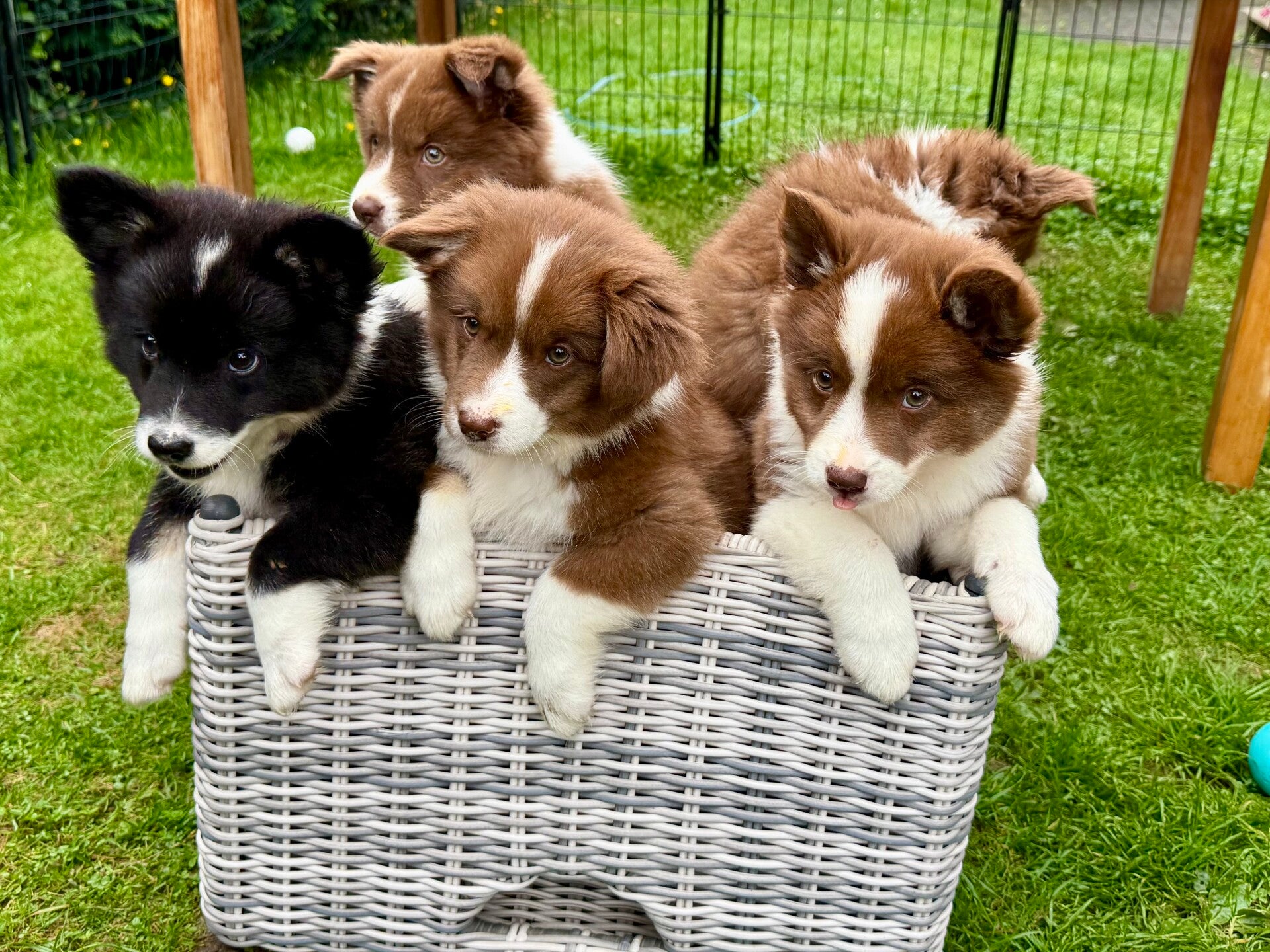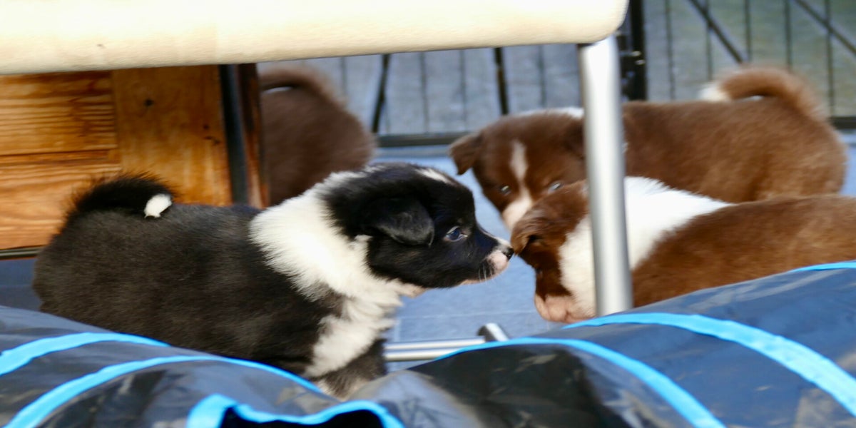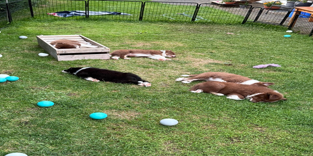 Es sind fünf agile Welpen, davon zwei Weibchen und drei Rüden.